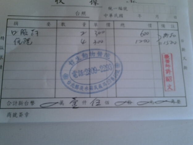 手術後3天,貓咪食慾不佳,每天吃不多,醫生認為是傷口疼痛,加上誘捕前,貓咪躲了7天,相信應該沒有進食,所以傷口恢復不易。醫生除了必要的抗生素外,另外也加了營養劑。