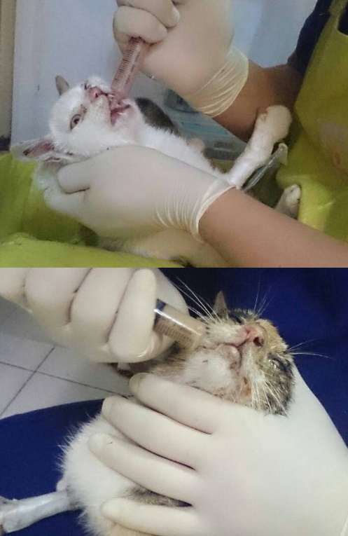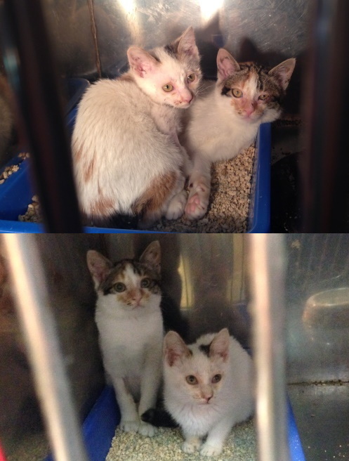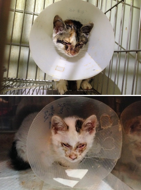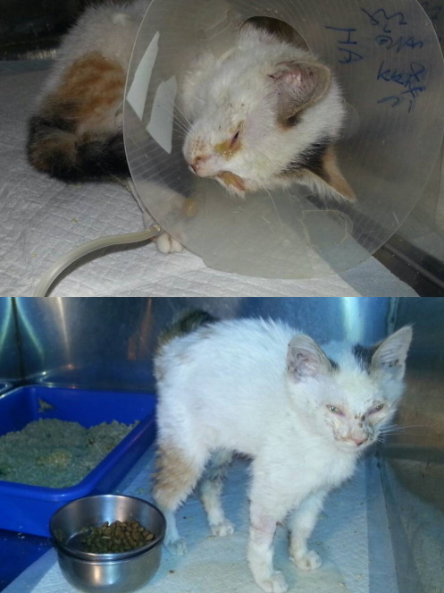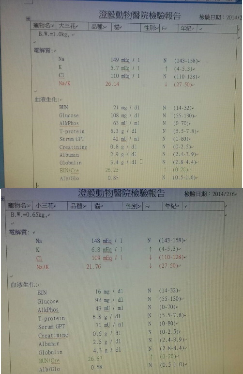 主題: 新北市收容所鼻氣管炎嚴重的兩隻小三花貓 申請者姓名: 臺北市支持流浪貓絕育計劃協會 花色: 申請日期: 2014-03-07 22:56:52 申請者部落格: 申請者臉書網址: 所在縣市/合作醫院: 台北市/澄毅動物醫院 治療費用: 21000元 需求人數: 46人 已結案 (2014-05-18 09:40:05) 報名人員: ilovecake188(已付款)、cafeyi(已付款)、poona(已付款)、Jason Chang x2(已付款)、周先媛 x2(已付款)、裘爸(已付款)、Kate Shih、Michelle Lin、Michelle Lin(已付款)、Michelle Lin(已付款)、Scottieblur Lu(已付款)、Rebecca(已付款)、罐頭(已付款)、May Shue(已付款)、Guan-Yi Li x2(已付款)、林微利 x2(已付款)、Renee Ch(已付款)、Renee Ch、Chris Joan eddy(已付款)、Cheza Joan eddy(已付款)、螺絲(已付款)、catheaven(已付款)、丸子(已付款)、SosaShen x2(已付款)、桔子(已付款)、曹小文 x2(已付款)、曹小文(已付款)、曹小文(已付款)、侯小宣(已付款)、Amber Tsai(已付款)、Piz(已付款)、勞伯特(已付款)、Connie Wei x2、林螢逸(已付款)、陳珍妮 x2(已付款)、吳冠敏(甘明又代繳)(已付款)、吳冠敏(甘明又代繳)(已付款)、Kiki Liang(已付款)、ERic YU(已付款)、maiwu(已付款)、小四(已付款)、小四 x2(已付款)、 候補人員: 動物病情說明: 新北市收容所帶出即將被安樂嚴重鼻氣管炎的小貓,兩隻眼睛都糊成一團,鼻塞、消瘦不肯進食,到院抽血檢查後上點滴灌食,每天點數次眼藥水、,慢慢狀況稍緩,也恢復食慾會開始吃一點東西,持續給予抗生素治療,一度狀況極佳,沒多久卻開始拉肚子,糞檢沒有看到寄生蟲卵,驅蟲拉出許多絛蟲,精神變得比較萎靡,食慾下降,開始又打噴嚏,出現呼吸困難的狀況,背脊凸出雙側腹凹陷,有輕微腹水,沒多久雙雙當了小天使...收容所群聚感染狀況嚴重,每種疾病都有潛伏期,穩定ㄧ種狀況,另一種疾病又悄悄發威,防不慎防,在此呼籲千千萬萬不要再把貓抓去送死。