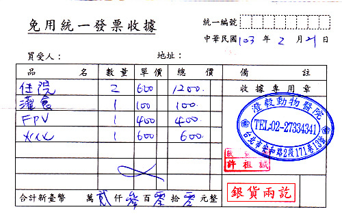 主題: 收容所感冒嚴重爆發貓瘟的小三花 申請者姓名: 臺北市支持流浪貓絕育計劃協會 花色: 申請日期: 2014-03-12 17:31:52 申請者部落格: 申請者臉書網址: 所在縣市/合作醫院: 台北市/澄毅動物醫院 治療費用: 2300元 需求人數: 7人 已結案 (2014-03-24 18:11:38) 報名人員: 白婷(已付款)、美石主義(已付款)、陳冠冠(已付款)、Emily Kuo(已付款)、Puffy(已付款)、Ada Chen(已付款)、PeiPei(已付款)、 候補人員: 動物病情說明: 2/5日某新北收容所大爆滿有六七十隻以上的貓咪...
