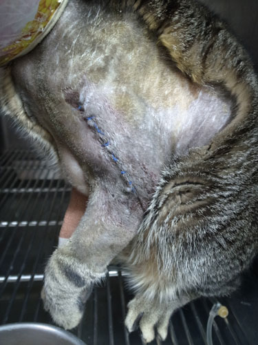 主題: 被人打斷腳的跛腳貓 申請者姓名: 陳世芬 花色: 申請日期: 2014-03-24 22:23:45 申請者部落格: https://www.facebook.com/fandy.chen 申請者臉書網址: http://blog.xuite.net/niblackcat/blog 所在縣市/合作醫院: 高雄市/銀星動物醫院 治療費用: 15200元 需求人數: 17人 已結案 (2014-05-18 09:39:47) 報名人員: 胖胖 x2(已付款)、屏東阿咩家(已付款)、機車寶(已付款)、JasmineC x2(已付款)、吳哆(已付款)、Lanny Shieh(已付款)、Chen Ping(已付款)、CHIU、yuki x3(已付款)、Ed Tsai(已付款)、lavinia x3(已付款)、思惟宗道(已付款)、 候補人員: 動物病情說明: 我在3/9救了一隻跛腳貓,是我餵養區域結紮的TNR貓咪,左前腳受傷,腳掌反折,三隻腳用跳的行動,疑似被人打斷腳,送至動物醫院,做了血檢和x光檢查,貓咪上半肢骨折,下半肢腳掌神經受損,目前有微弱反應。3/10和3/11看了五家醫院,醫生說貓咪還有機會可以把骨頭位置接回,可做骨頭重建手術,但神經受損部分需術後觀察才能知道,如果不做手術,姿勢不對,未來可能會腳拖地受傷,到時候就要截肢。