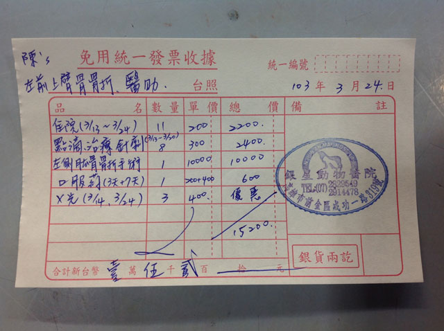 貓咪3/14在銀星動物醫院完成手術,3/24出院。