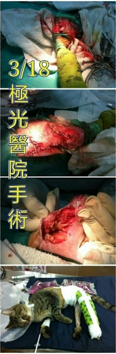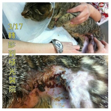 經向TNR協會求助,感謝協會全力協助,將傷貓於3/17轉院至極光動物醫院醫療。