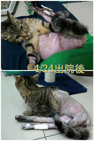 感恩再感恩!動物近況說明: 虎斑妹出院後目前暫時安置在協會,吃喝與排便均正常。