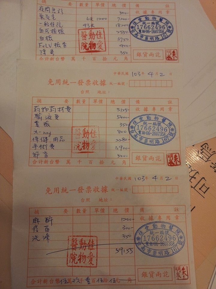 深深感謝伸出援手的捐款人,細心照料的台南市佳愛動物醫院所有助理及醫生,還有熱心提供我訊息的貓友,以及最最辛苦的台北市請支持流浪貓節育TNR協會,我有個3歲的孩子,