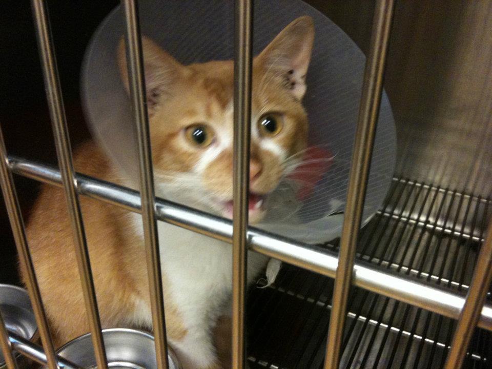 主題: 路倒疝氣貓 申請者姓名: 廖美蘭 花色: 申請日期: 2012-06-15 11:37:37 申請者部落格: 申請者臉書網址: https://www.facebook.com/bernice.liao.1 所在縣市/合作醫院: 台北市/其他院所醫助專案(醫院請先MAIL溝通) 治療費用: 7830元 需求人數: 9人 已結案 (2012-06-22 00:21:17) 報名人員: Victoria Pei(已付款)、bernice liao(已付款)、Sunny Chen(已付款)、Yi-ling Lu(已付款)、nicole chen(已付款)、Charlene(已付款)、AdaLin(已付款)、Roach Wu(已付款)、Yu Ha(已付款)、 候補人員: 動物病情說明: 這隻橘白貓路倒在咖啡廳門口,被民眾通報志工緊急送醫,明顯看到肚子有肉瘤,經醫生檢驗為疝氣不得不緊急動刀,住院一周後恢復健康