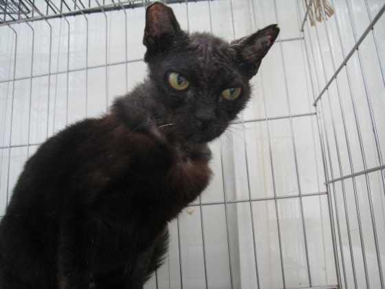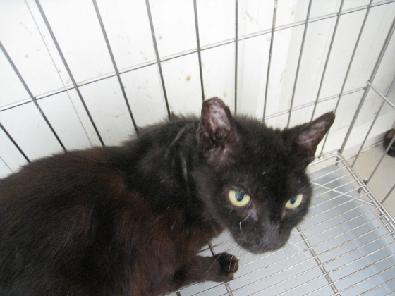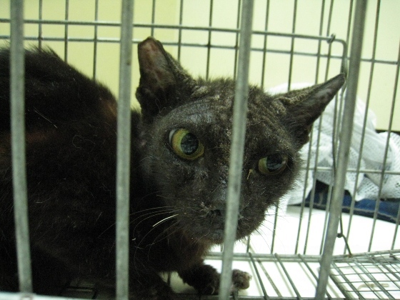 可憐的小黑貓,嚴重的疥癬感染已經讓他的背上看起來坑坑疤疤,