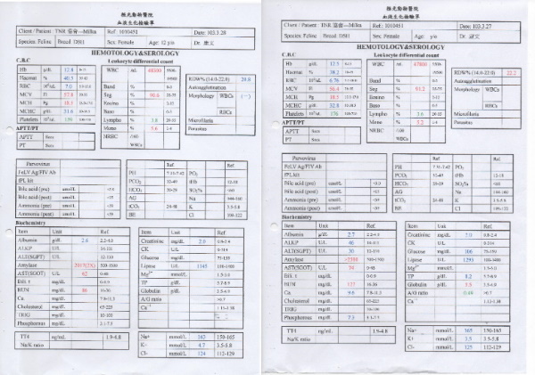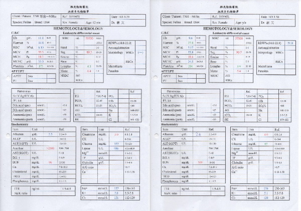 主題: 腫瘤轉移的Milka 申請者姓名: 臺北市支持流浪貓絕育計劃協會 花色: 申請日期: 2014-04-03 16:32:23 申請者部落格: 申請者臉書網址: 所在縣市/合作醫院: 台北市/極光動物醫院 治療費用: 30830元 需求人數: 32人 已結案 (2014-05-18 09:43:27) 報名人員: 老皮(已付款)、Fei Su x3(已付款)、Freesia Tsai、徐雅嬪(已付款)、林嘉琪(已付款)、Moon(已付款)、林小豬 x3(已付款)、Ppn Huang(已付款)、Nix Lin(已付款)、Shih Ju Chiu(已付款)、貝利小姐(已付款)、胖葡萄(已付款)、QQ(已付款)、Daisy Juang(已付款)、小黃(已付款)、Cheza Joan eddy x2(已付款)、甘明又 x2(已付款)、Chenyu Chang(已付款)、beforn(已付款)、春卷(已付款)、李坤財(已付款)、SASA(已付款)、蝦(已付款)、Patrick x4(已付款)、 候補人員: 動物病情說明: 高雅的Milka ,去年底,就開始有排尿問題,用藥控制後正常,血檢數值在年初時表現也很漂亮。