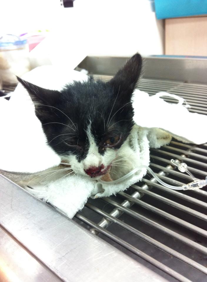 發現牠還有呼吸,鼻子都是血,