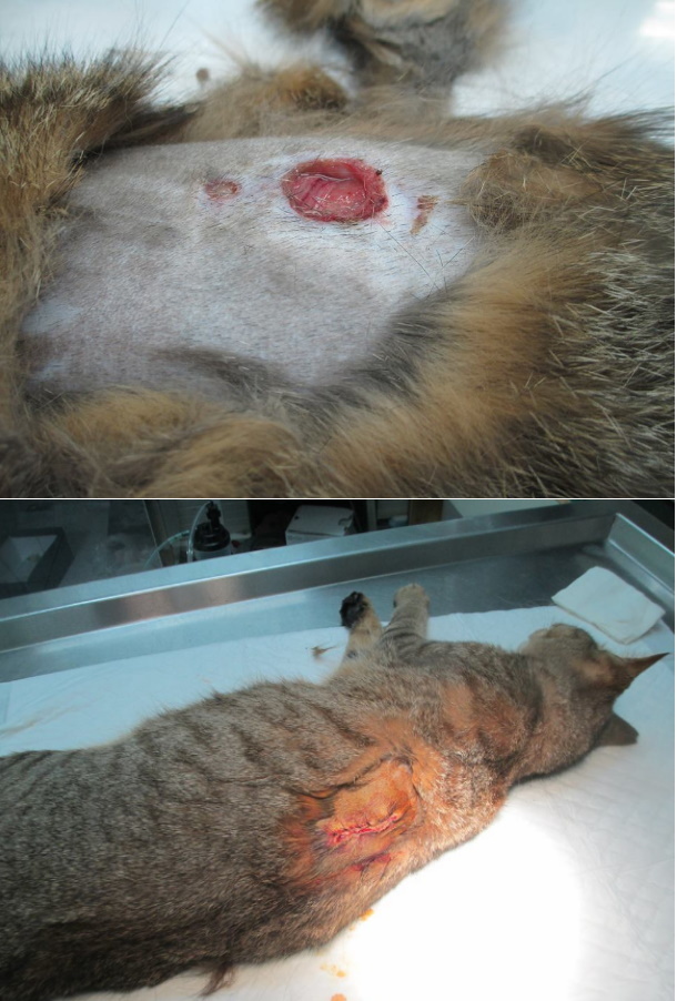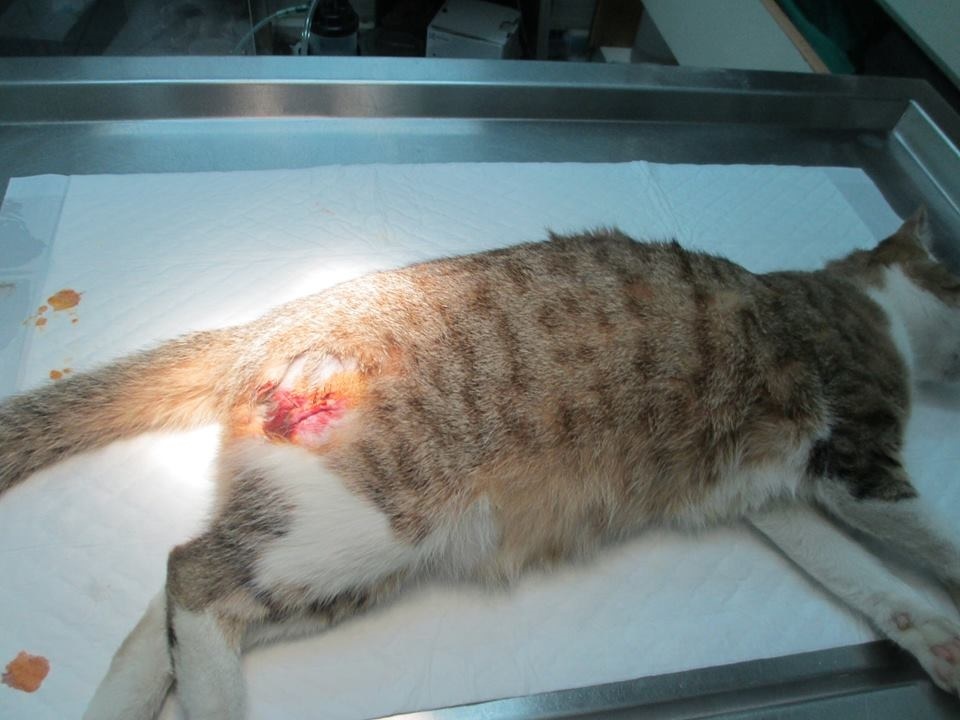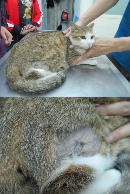 主題: 被貓攻擊屁股和背受傷的兩隻小母貓 申請者姓名: 臺北市支持流浪貓絕育計劃協會 花色: 申請日期: 2014-04-17 20:14:01 申請者部落格: 申請者臉書網址: 所在縣市/合作醫院: 台北市/欣旺動物醫院 治療費用: 6400元 需求人數: 15人 已結案 (2014-05-18 09:42:26) 報名人員: Sveta Meng-Ciou Lin(已付款)、Tiffany Chung(已付款)、裘爸(已付款)、Emily Yen(已付款)、Jack Yu x2(已付款)、黃金勇、Summer(已付款)、martim、martim、bluestone1207 x2(已付款)、Jill S.、Jill S.(已付款)、Ted(已付款)、小四(已付款)、luna_lin(已付款)、Queenie(已付款)、Peggy Chou(已付款)、 候補人員: 動物病情說明: 林小姐餵養已結紮的貓咪,近期有外地公貓路過,攻擊原有貓群,造成兩隻貓咪屁股和背部撕裂傷,傷口無法自行癒合,必須透過手術清創縫合,捕捉當天先給予抗生素治療,兩天後進行麻醉手術清創縫合,休養一天傷口穩定,由林小姐先帶回照顧繼續餵食抗生素,兩周後回診拆線,復原狀況良好,這兩隻都是結紮的小母貓,個性溫和,肥嫩肥嫩的,遇到兇猛的大公貓,只有挨打被咬的份,所幸發現及時妥善醫療照顧,沒有造成感染,醫療費用還請各位幫忙。