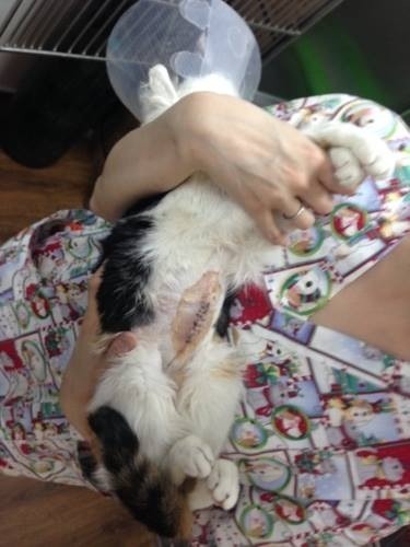 3、手術很順利並平安渡過三天的危險期。住院期間,親人勇敢的美眉總是忍著大傷口的疼痛,起身迎接來探望牠的人,然後磨蹭撒嬌,叫人看了又愛又憐。