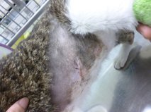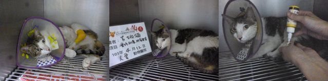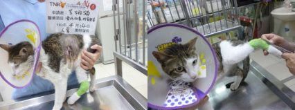 主題: 疑似被車撞斷腳.腹部有一個大窟窿的貓咪~ 申請者姓名: 呂錦花 花色: 申請日期: 2014-04-22 10:31:02 申請者部落格: 申請者臉書網址: 所在縣市/合作醫院: 高雄市/人愛動物醫院 治療費用: 9810元 需求人數: 11人 已結案 (2014-06-20 16:32:46) 報名人員: Patrick x2(已付款)、Amelia(已付款)、Daniel Tsai(已付款)、凱特(已付款)、小四(已付款)、阿米(已付款)、philip(已付款)、alicelin x3(已付款)、 候補人員: 動物病情說明: 鄰居通報有隻貓咪倒在路中央.找了兩天好不容易終於在車下找到...原來是很久以前結紮的貓咪.生性愛到處遊蕩的阿咪.總是愛來才來.平日久久才能碰到他一面....問了附近的店家.聽說好像看到他好多天了.可是大家一靠近.貓咪會張牙舞爪的亂竄.大家看看後也就不理了..經過一陣折騰.好不容易抓到送醫後..醫師研判貓咪疑似車禍或是被狗咬.身體上有2處傷口感染潰爛.左後腳骨折....經過外科&縫合.與這陣子醫療換藥的努力之下.外傷部分已經OK.左後腳也可以踩地了~只是維持時間不久..... 動物近況說明: 因為貓咪的後腳有骨折.復原期醫師保守估計大約還要1.5~2個月~所以貓咪的肚子傷口已大致沒問題.病況也算穩定之下.復健部分在醫生許可的情況下先帶回照顧..往後就大約一周複診一次.換藥及拿藥回來拌罐罐吃(幸好還算愛吃罐罐.不排斥藥粉味..不然還真傷腦筋ㄚ)...這陣子相處之下.發現貓咪頗有潛力...算是還算乖的小孩...越來越懂得黏人.偶而還出現踏踏.真是令人驚喜ㄚ....所以希望復原之後能出現有緣人領養^^