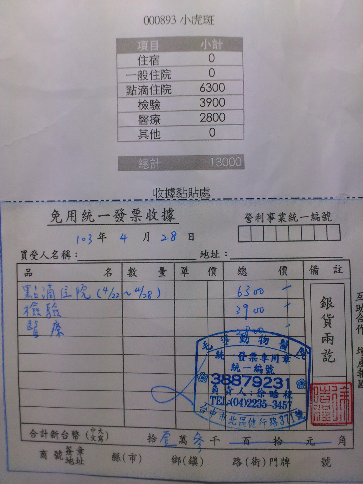 感謝協會接受我的求援,小虎斑的醫療費用還是學生的我無法全額負擔,還望各位好心的愛貓人多多幫忙,感恩。