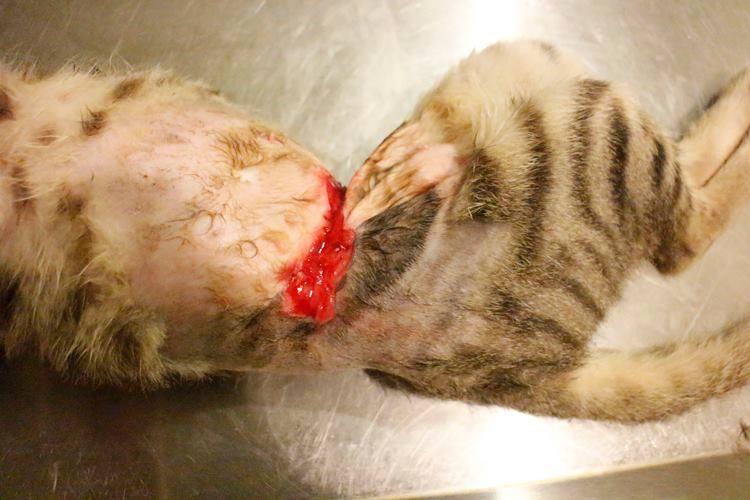 四月中旬民眾發現橡皮擦腹部束著橡皮筋,於是向協會通報,志工前往誘捕,幸運的是兩個多小時後順利誘捕到他,但不幸的是… 原本興高采烈的以為,拿下橡皮筋、結紮休養後,他便可以回到原生地舒服的繼續生活,但晚間醫院來電告知他的狀況,真的令人心痛,為什麼要這樣對待他?