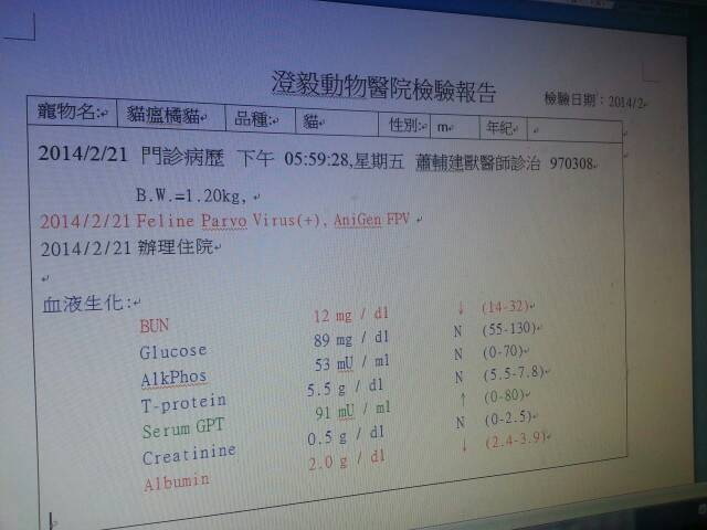 主題: 鼻氣管炎貓瘟的橘橘 申請者姓名: 臺北市支持流浪貓絕育計劃協會 花色: 申請日期: 2014-04-30 17:34:48 申請者部落格: 申請者臉書網址: 所在縣市/合作醫院: 台北市/澄毅動物醫院 治療費用: 3360元 需求人數: 8人 已結案 (2014-06-20 16:29:21) 報名人員: kate(已付款)、明旺工程行 x2(已付款)、Yun Shan(已付款)、小四 x2(已付款)、Andrea Lin x2(已付款)、 候補人員: 動物病情說明: 協會從新北收容所帶出即一群因鼻氣管炎被排入安樂的貓,橘橘親人又可愛,雖然有鼻氣管炎的狀況,但胃口尚佳,抗生素治療下鼻塞狀況也改善很多,本以為可以順利度過觀察期,怎知在第八天的時候,橘橘劇烈嘔吐,精神萎靡,檢驗貓瘟為強陽性,上點滴治療,橘橘還是止不住腹瀉、嘔吐第三天當了小天使,醫療火化的費用還請各位幫忙。