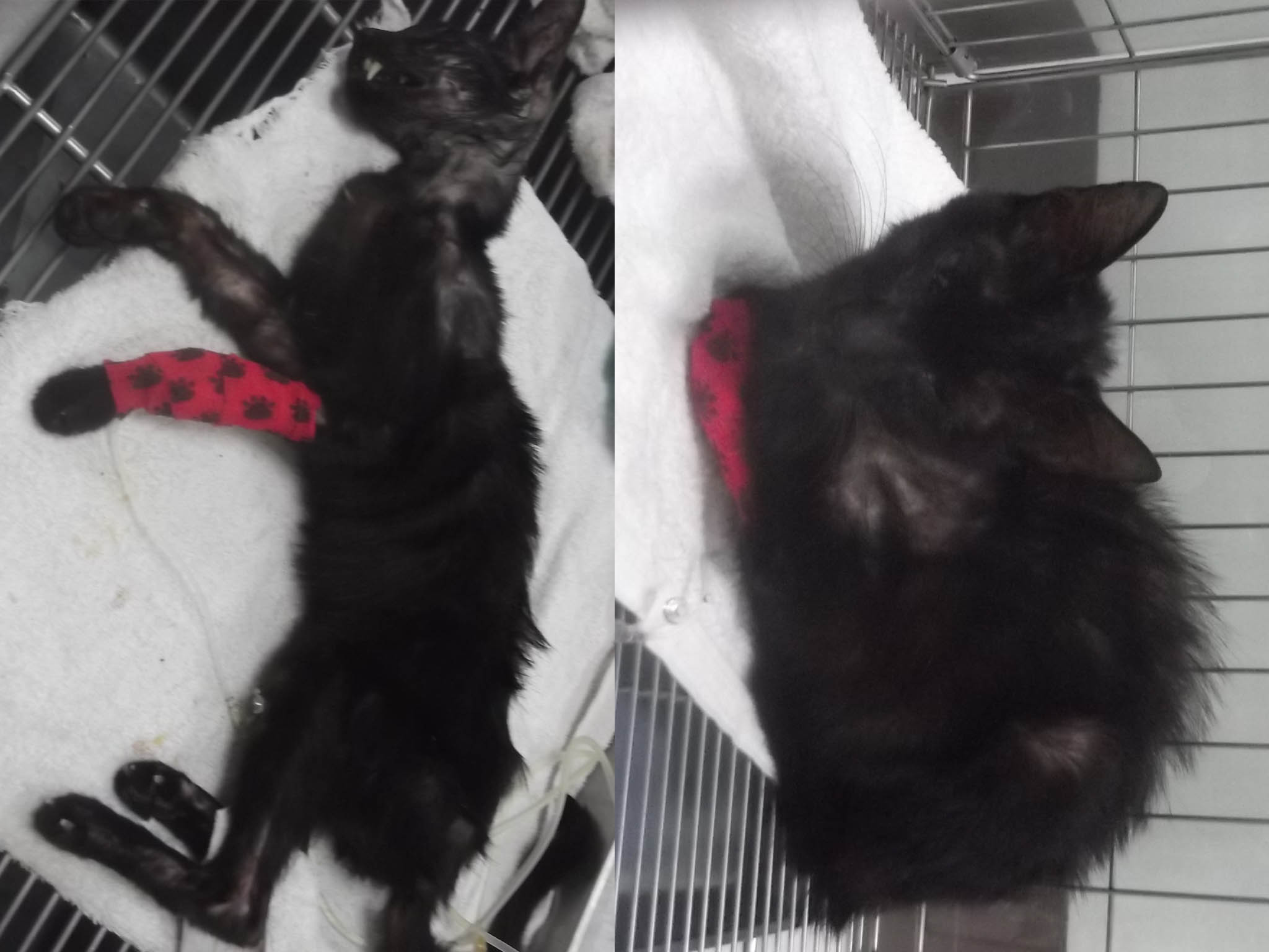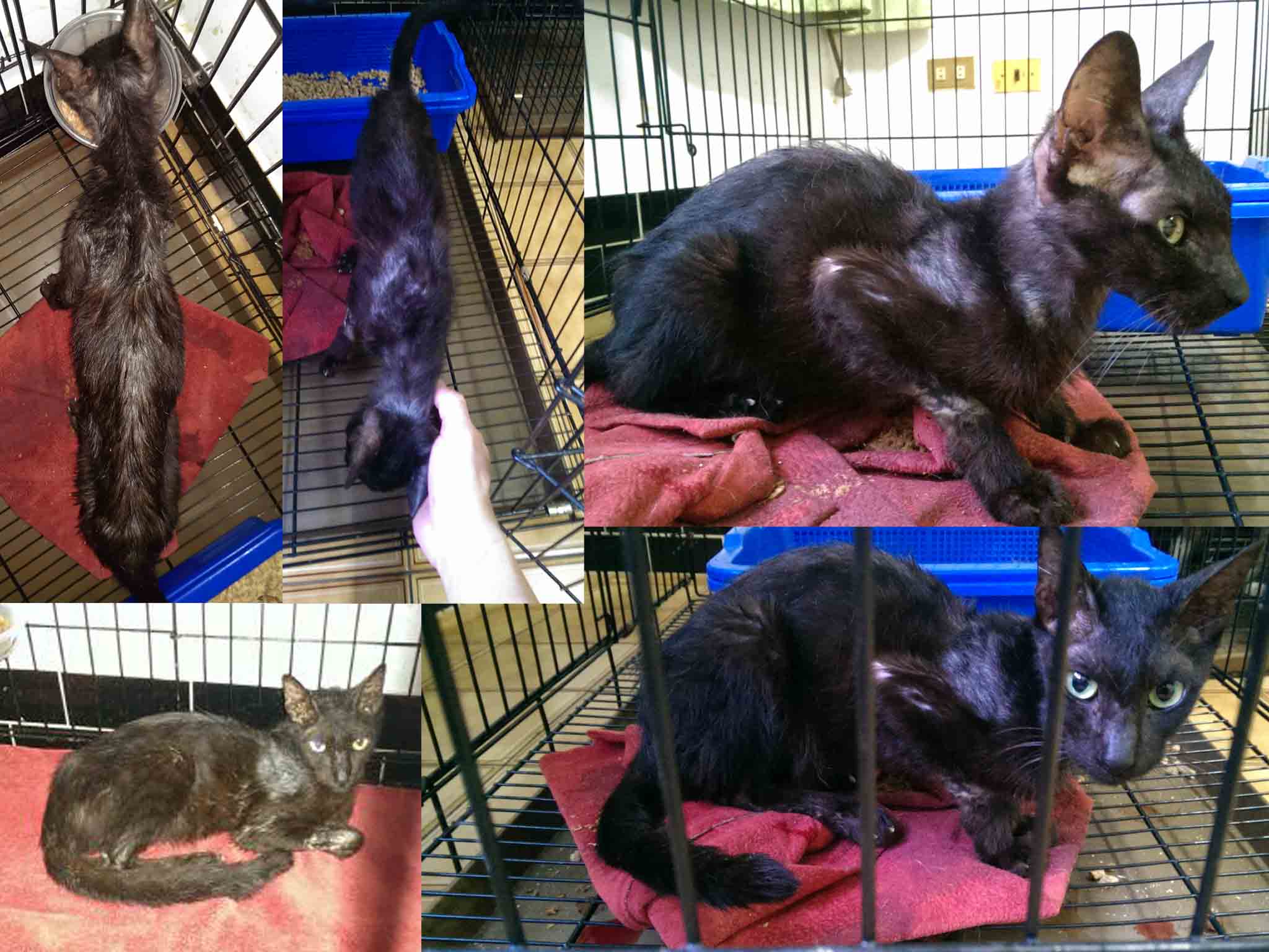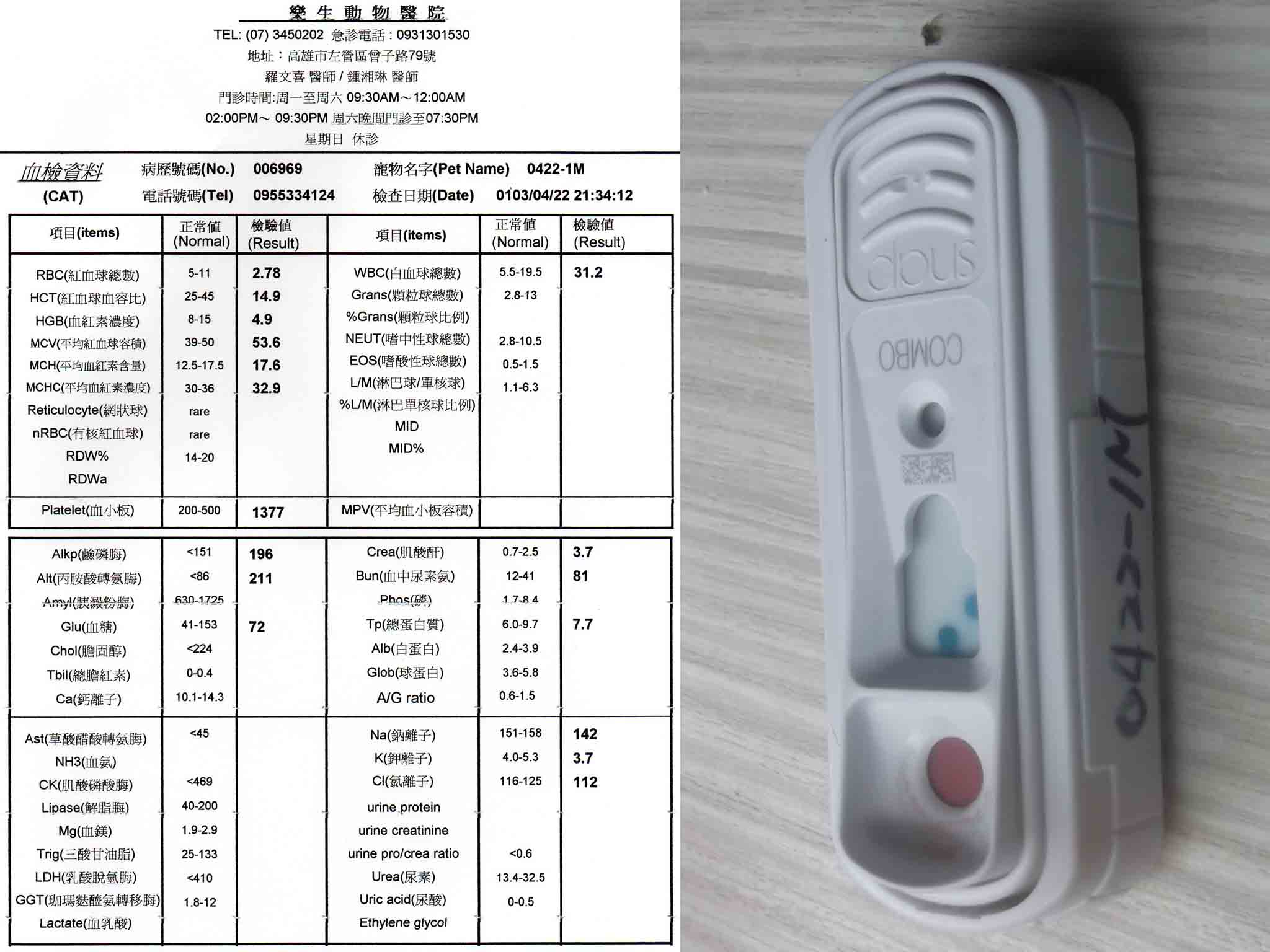 動物近況說明: 送醫當天,醫生打電話給我說,所有檢驗都完成了,但讓他吃驚的地方是,經由牙齒判定,這隻貓鐵定是超過7歲以上的老貓…….老貓!!!那比我老木還要老耶!怎麼會這樣?那麼老了怎麼還在外面流浪?問號一直在內心浮現,在他住院的這段期間,不定期去探視,也跟醫生討論了一番,我們都很確定牠曾經是隻家貓,因為過份的親人,沒戒心,所以才沒有在外生存的能力,醫生還說,其實到院時他的狀況真的很差,隨時都有可能走,更慘的是牠驗出有愛滋…………聽到這些,我連送養的念頭都沒了,直接回我家!!!因為健康的成貓都很難送了,更何況是有愛滋的紙片老貓,目前在我家三樓做隔離等牠比較適應其他喵之後會讓牠出來自由活動,也因為牠過瘦,所以給予幼貓飼料巴費方式伺候,另加5餐鮮食,補品每天加強,只求牠胖點!