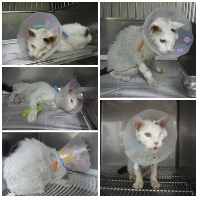 主題: 被棄養後車禍虛弱脫水暴瘦之白白 申請者姓名: 陳露露 花色: 申請日期: 2014-06-01 19:37:44 申請者部落格: 申請者臉書網址: 所在縣市/合作醫院: 高雄市/恩澤動物醫院 治療費用: 19715元 需求人數: 23人 已結案 (2014-06-20 16:37:24) 報名人員: 藍琉璃(已付款)、ERic YU(已付款)、李水晶(已付款)、Yupei Hsu(已付款)、Yupei Hsu、Ben(已付款)、甜心倫(已付款)、王衣若(已付款)、Roy(已付款)、Ou Han x2(已付款)、Ping Meng(已付款)、cathy(已付款)、chu妹(已付款)、Ada Chen(已付款)、Chen Ping、陳珍妮(已付款)、阿章(已付款)、心安平安 x2(已付款)、JasmineC(已付款)、Po-Lin Chen(已付款)、老皮(已付款)、KATE(已付款)、阿屁(已付款)、 候補人員: 動物病情說明: 前幾日志工餵養區域附近愛媽告知有一貓車禍