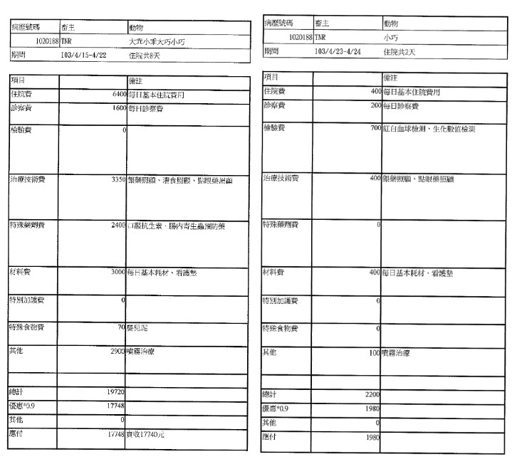 小巧:住院十天,口服抗生素、驅腸內寄生蟲、餵藥灌食、點眼藥、噴霧治療
