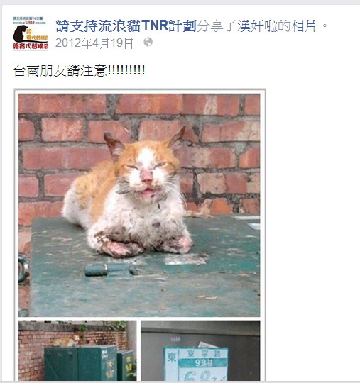 主題: 幸福快樂度過兩年的變電箱 申請者姓名: 臺北市支持流浪貓絕育計劃協會 花色: 申請日期: 2014-05-11 23:46:27 申請者部落格: 申請者臉書網址: 所在縣市/合作醫院: 新北市/哲生動物醫院 治療費用: 10320元 需求人數: 12人 已結案 (2014-06-20 16:36:23) 報名人員: 小四 x2(已付款)、心安平安 x3(已付款)、Cassie Lo(已付款)、AppleR(已付款)、Ray0322(已付款)、藍格子(已付款)、小四 x3(已付款)、 候補人員: 動物病情說明: 還記得變電箱嗎?2012/4/19網友於粉絲團通報的台南傷貓,