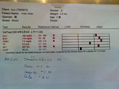 主題: 急性腎衰竭及泌尿道阻塞的阿苖 申請者姓名: Yvonne Chu 花色: 申請日期: 2014-06-02 17:20:34 申請者部落格: 申請者臉書網址: 所在縣市/合作醫院: 高雄市/弘恩動物醫院 治療費用: 13400元 需求人數: 15人 已結案 (2014-06-27 13:42:58) 報名人員: 蔡翔恬(已付款)、山豬小孩(已付款)、Shizuka Ho(已付款)、Weiweihsu(已付款)、shuku點點(已付款)、春卷(已付款)、LuLu(已付款)、Chris Joan eddy(已付款)、lavinia(已付款)、Tiffany Shen(已付款)、orange(已付款)、Kiki Liang(已付款)、Joe Ho(已付款)、謝小馬(已付款)、阿駿(已付款)、 候補人員: 動物病情說明: 這隻貓咪是我工作附近常看到的街貓,從小就很親人,也曾被野狗咬的支離破碎被救了回來!但不知為何最近食慾不佳,本以為可能是小感冒但又不見感冒症狀!昨夜去餵食時發現牠將吃進去的東西吐出來,覺得心裡很不安,今天早上請假去街上找牠,找到時再度餵食,牠不僅只吃一口,更是在我眼前狂吐~我嚇死了!二話不說,趕緊連絡合作醫院,將牠送去!院方趕緊為牠作了完整的血檢和體檢,發現牠的尿道阻塞了,而且還有急性腎臟病,於是醫生也幫牠作了麻醉導尿。將近一個月的治療,中間阿苗還經歷了白蛋白過低、拔掉尿管後出現血尿等症狀,到牠留院觀察了一段時間確定尿裡沒有血絲才將牠帶出院。感謝協會能伸手幫助這隻貓咪,更謝謝所有捐款幫助這隻貓咪恢復健康的朋友們。 動物近況說明: 阿苗目前在一位愛心媽媽的家中靜養,愛心媽媽說阿苗很可愛,也很撒嬌,有考慮未來會收編牠。