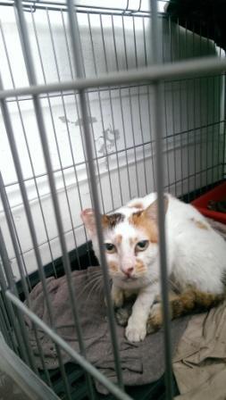 主題: 嚴重呼吸道感染白血球指數飆高+口腔潰爛的浪貓 申請者姓名: 郭玟岑 花色: 申請日期: 2014-05-23 23:52:46 申請者部落格: 申請者臉書網址: 所在縣市/合作醫院: 新北市/成蹊動物醫院 治療費用: 10250元 需求人數: 12人 已結案 (2014-06-20 16:34:36) 報名人員: Yao-Hsien Tseng x2(已付款)、王婕(已付款)、阿禎(已付款)、何偉靖(已付款)、ivy0934(已付款)、Nina Chiu(已付款)、Ping Meng x2(已付款)、阿貝(已付款)、Vaughn Liu(已付款)、Kuen-Lin Tsai(已付款)、 候補人員: Cindy Hung、 動物病情說明: 3/28晚上11點半下班於住家附近發現貓咪,靠近時貓貓完全無任何反應,發現牠很虛弱所以先回家拿了籠子隔天早上帶到永和同伴動物醫院救助,