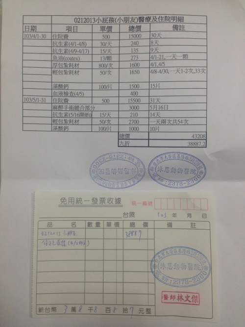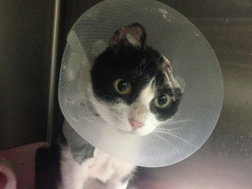 主題: 大面積燙傷的小朋友第五階段費用(內有血腥照..慎入) 申請者姓名: 臺北市支持流浪貓絕育計劃協會 花色: 申請日期: 2014-05-27 18:30:57 申請者部落格: 申請者臉書網址: 所在縣市/合作醫院: 台北市/沐恩動物醫院 治療費用: 38887元 需求人數: 41人 已結案 (2014-06-27 13:38:28) 報名人員: Oly Wu(已付款)、Kuen-Lin Tsai(已付款)、潘亮岑 x2(已付款)、aggy(已付款)、Ginelle Qiu x2(已付款)、Rebecca Chen(已付款)、娜塔莎(已付款)、Helen Yu(已付款)、Ppn Huang(已付款)、劉芯瑞(已付款)、Owen x3(已付款)、Nomar(已付款)、Philip(已付款)、陳怡靜 x2(已付款)、Chihying Vivian Huang x2(已付款)、周小蕾(已付款)、Annie Huang(已付款)、Shane(已付款)、Eddy Cheng(已付款)、Jiun(已付款)、Viviann Chuang、beforn(已付款)、Ke Zi Lin、Ke Zi Lin(已付款)、黃小資 x2(已付款)、VINCENT LIAO(已付款)、Amberger(已付款)、Alada Meow(已付款)、Cindy Hung x2(已付款)、May Jeng(已付款)、Alice(已付款)、Cheng Chou x2(已付款)、Yu Ting Tseng x2(已付款)、 候補人員: Wills Chang、Cherry Lee、 動物病情說明: 2/1貓貓因燒傷跑來家裡求救,立即送往醫院,醫生研判應該是遭人惡意潑油放火,左耳已完全燒爛,沿著頸部到上背部有四級燒傷,醫院說這需要長期的治療,至少兩周的時間幫助牠將組織長好,至少需要1個月以上才能完全復原,且復原後需要重建左耳,目前醫藥費用是個未知數。