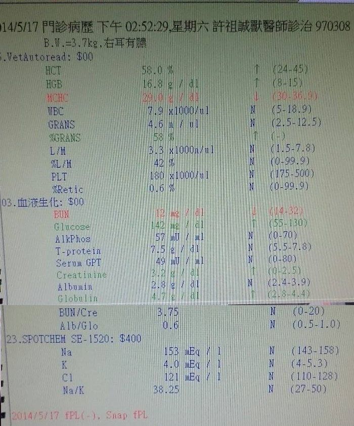 剛入院的時候,肝腎指數異常,貓可能是因為TNR貓咪緊張還有不舒服,所以進食量太少導致,所以先上點滴,穩定各項指數與身體機能,大概2-3天後,貓咪必較不緊張了,也開始有少量進食,這時候醫生開始嘗試幫貓咪清理耳朵與點耳藥,本來很擔心,因為貓咪太緊張(哈氣,打人),可能無法醫療,但是意外的,貓咪在清理耳朵與點藥的時候會定格,可能知道醫生叔叔與阿姨都是好人要幫他治病,所以忍住不發飆.......