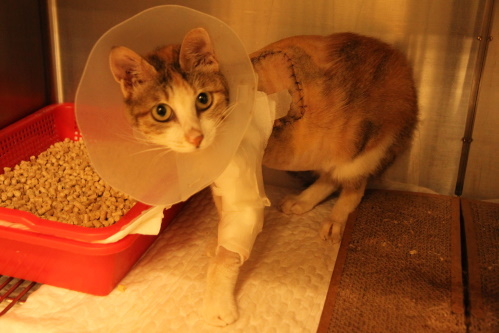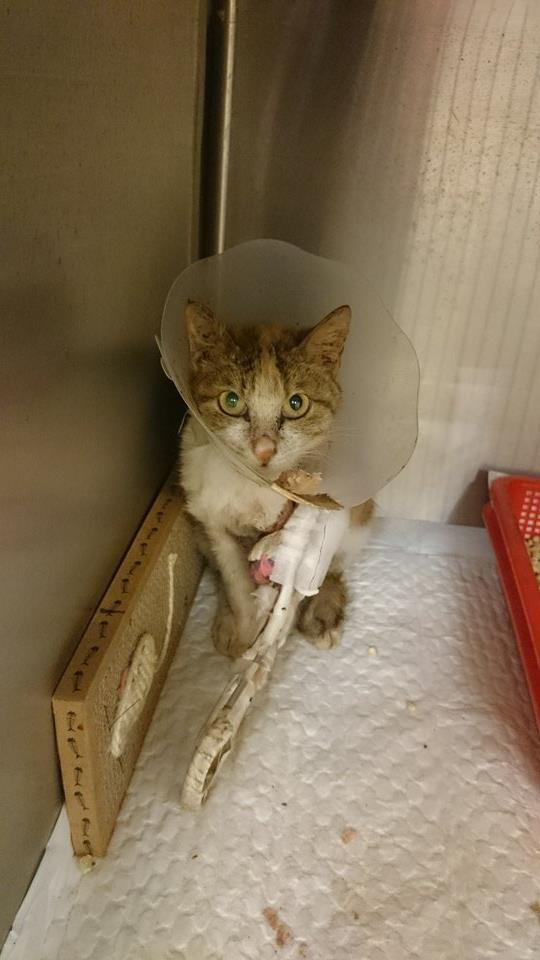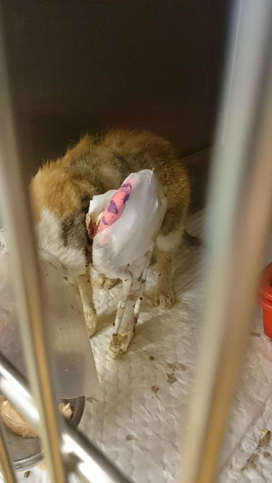 當下決定馬上救援,目前還在沐恩動物醫院救治,治療過程中隨時很可能傷口感染敗血症而需要結肢.......經過傷口要對抗細菌跟植肉芽的手術後,