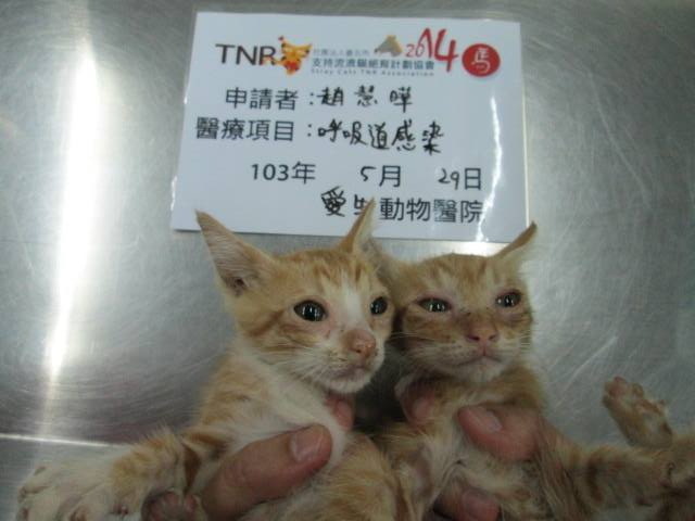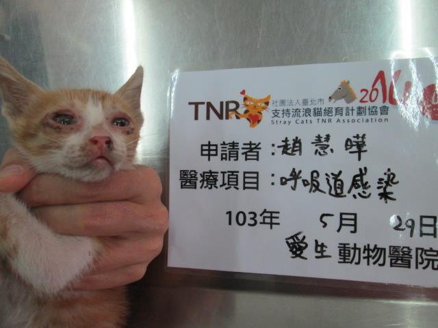 主題: 屏東凌雲新村泡疹三小貓 申請者姓名: 趙慧曄 花色: 申請日期: 2014-06-16 22:01:55 申請者部落格: 申請者臉書網址: 所在縣市/合作醫院: 屏東縣/愛生動物醫院 治療費用: 12600元 需求人數: 14人 已結案 (2014-08-05 11:05:35) 報名人員: 陳珍妮(已付款)、曹立松(已付款)、Ppn Huang、Tiffany Shen x2(已付款)、張雅筑、philip(已付款)、愛貓人(已付款)、sally x2(已付款)、lavinia(已付款)、mint(已付款)、HU x2(已付款)、Eli Hsiao(已付款)、Irene Hsu(已付款)、 候補人員: 動物病情說明: 這是屏東市六塊厝舊眷村~凌雲新村!!這裡的貓咪是一位退休官兵戚爺爺餵養的貓咪!!戚爺爺靠著微薄的老人年金還要餵養貓咪!!由於沒有結紮的觀念以致為養貓咪數量越來越多!!小貓生生不息!!最近又跌倒骨折醫療!!已幫他送達罐頭飼料!!現在志工要一一誘捕貓咪們TNR先把貓咪數量控制住!!結果今天誘捕到疑似白血病又有皰疹病毒的小貓能住院醫療痊癒~幸福送養~~希望大家能愛心幫助貓咪們的住院醫療費用!!讓戚爺爺能安心餵養他心愛的貓咪們!!謝謝大家!!!謝謝