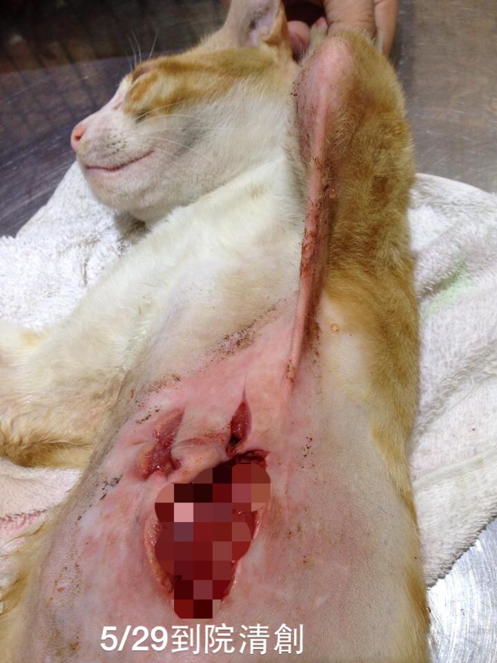 貓咪緊張想逃脫所以傷口割得更大更深