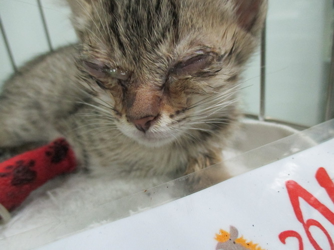 主題: 嚴重鼻管炎的小小咪 申請者姓名: 李淑芬 花色: 申請日期: 2014-06-24 18:07:48 申請者部落格: 申請者臉書網址: 所在縣市/合作醫院: 高雄市/樂生動物醫院 治療費用: 14700元 需求人數: 16人 已結案 (2014-08-05 11:05:28) 報名人員: JA MAKINO 牧野丁丁(已付款)、Vivienne Peng(已付款)、林韋韋(已付款)、賴霂菈(已付款)、Cathy25(已付款)、Vin Kao、Vin Kao、Vin Kao(已付款)、Vin Kao、Chen Ping(已付款)、Pearl Liao(已付款)、小娃(已付款)、朱哲民(已付款)、朱哲民、朱哲民、朱哲民、lavinia x3(已付款)、Kuen-Lin Tsai(已付款)、lavinia x2(已付款)、 候補人員: 動物病情說明: 小小咪是我在要前往第十站餵食時,在馬路中央看到他的,那時騎著車,眼光餘角閃過好像有一個東西在馬路中央,停下走過去一看,傻眼!是隻約不到兩個月的小貓“坐”在那裡,誇張的是,用手就撈到了,趕快跟一旁的檳榔攤借紙箱,在光亮處仔細檢查牠,才發覺眼睛都因嚴重鼻氣管炎而被分泌物給沾黏住了,難怪看不到,於是加快腳步餵食,速速帶他家安置,隔天一早立刻送醫,因他還不到兩個月大,小貓較好送養,故出院後將中途送養