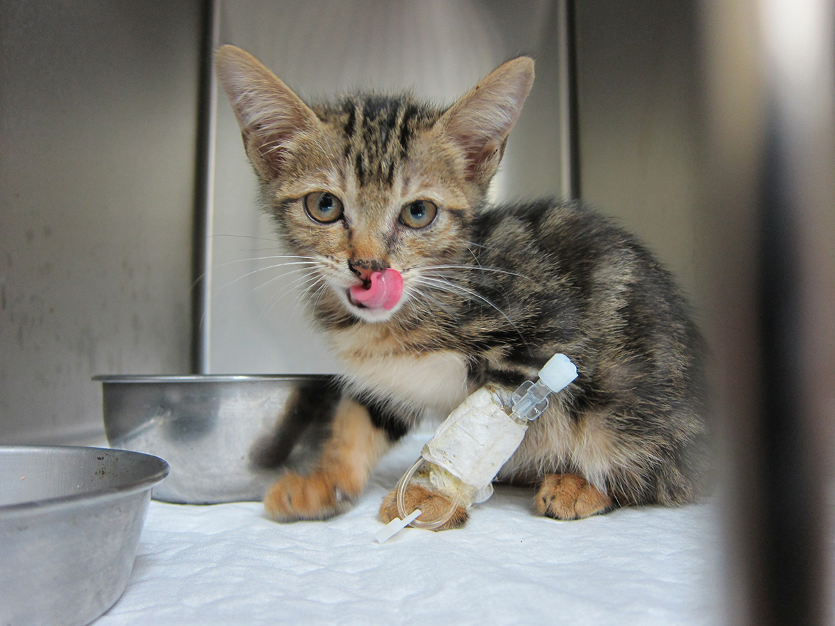 當下醫生馬上幫小貓吊點滴、用電熱毯保溫,並讓小貓住院檢查。