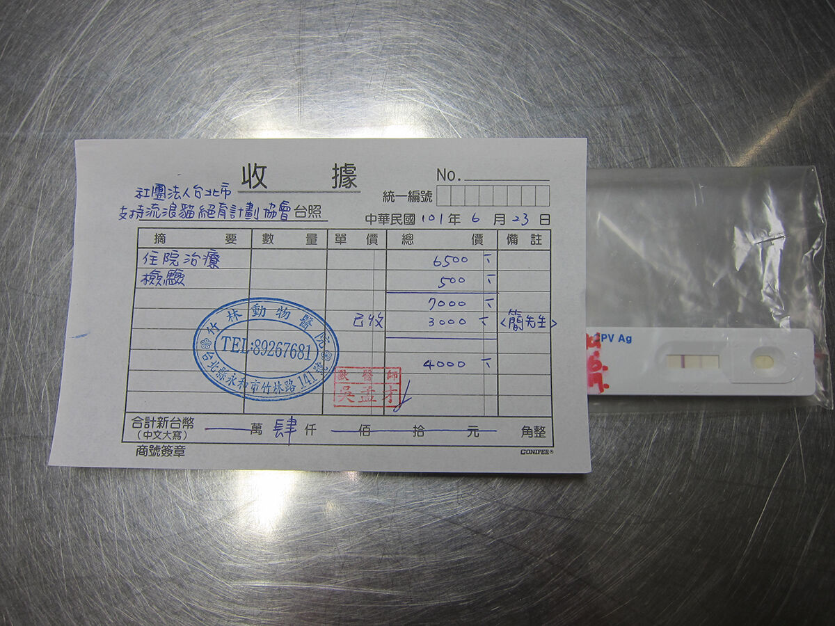 醫生說失溫症狀已經復原,但拉肚子的原因經過驗血後確認是感染貓瘟,