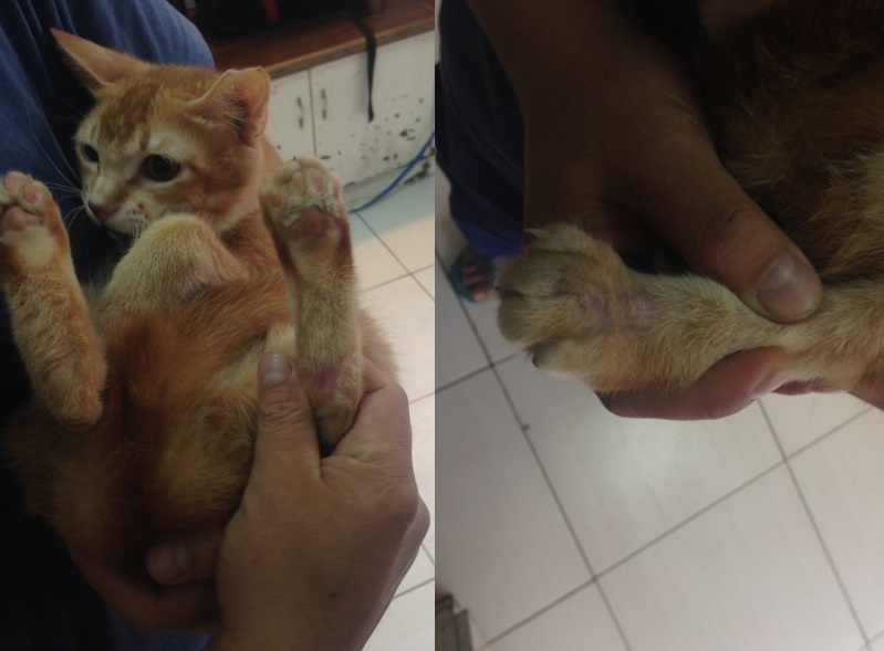 主題: 萬華腳骨折的阿誠 申請者姓名: 臺北市支持流浪貓絕育計劃協會 花色: 申請日期: 2014-06-20 18:32:27 申請者部落格: 申請者臉書網址: 所在縣市/合作醫院: 台北市/澄毅動物醫院 治療費用: 10000元 需求人數: 12人 已結案 (2014-06-27 13:39:07) 報名人員: Riona Chiu(已付款)、Moirae(已付款)、lavinia x2(已付款)、小七(已付款)、beforn(已付款)、有貓真好(已付款)、謝寬仁(已付款)、ViVi(已付款)、fnnny x3(已付款)、 候補人員: 動物病情說明: 萬華執行TNR時看到這隻小黃貓走路一拐一拐的,走過的地方都有血跡,設了誘捕籠躲在一旁,不久他一跳一跳靠近誘捕籠,看起來腳還可以掂地,進籠後激烈掙扎整個誘捕籠都是血,隔天送醫檢查,腳部沒有皮膚包覆,關節處骨折,若要進行手術需要有足夠的皮膚,且腳可能會僵直,不進行手術等骨頭自行生長需要較長時間限制活動,復原後行動力不佳無法躲避危險,不管是否要進行手術,貓咪都沒有辦法回到街上生活,幾經思考,還是讓貓咪骨頭和皮膚自行癒合,也許有機會可以"彎曲",雖然不是那麼靈活,但總比僵直來的好,住院期間"阿誠"本來很緊張,人一靠近就哈氣,沒事就躲在紙箱內,感覺很緊張,住院第四天,阿誠就感冒了,鼻淚水明顯,開始給予口服抗生素和噴霧治療,治療後皮膚完全癒合,阿誠也越來越乖,每次到醫院探望他,都猛蹭籠子,喵喵叫撒嬌,不知道是否是流浪太久的關係,阿誠一直表現得很餓的樣子,稍微吃多一點就拉肚子,驅過各種寄生蟲他還是都軟便,吃處方飼料,稍微有點改善,但還是持續軟便,出院後先帶回安養之家照顧調養,醫療費用還請各位幫忙。