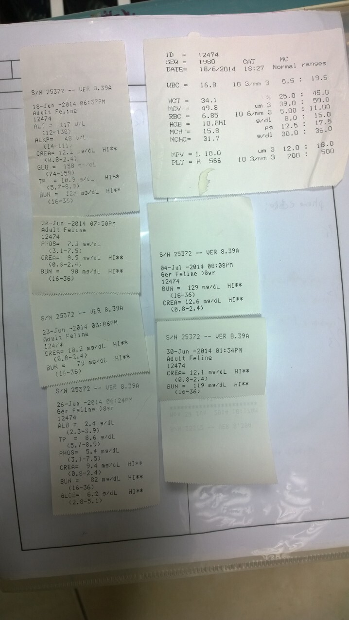 腎衰竭的情況有可能是愛滋病毒攻擊,也有可能是貓咪本身的慢性疾病,未來只能吃腎衰竭的處方飼料,及每日打皮下點滴......