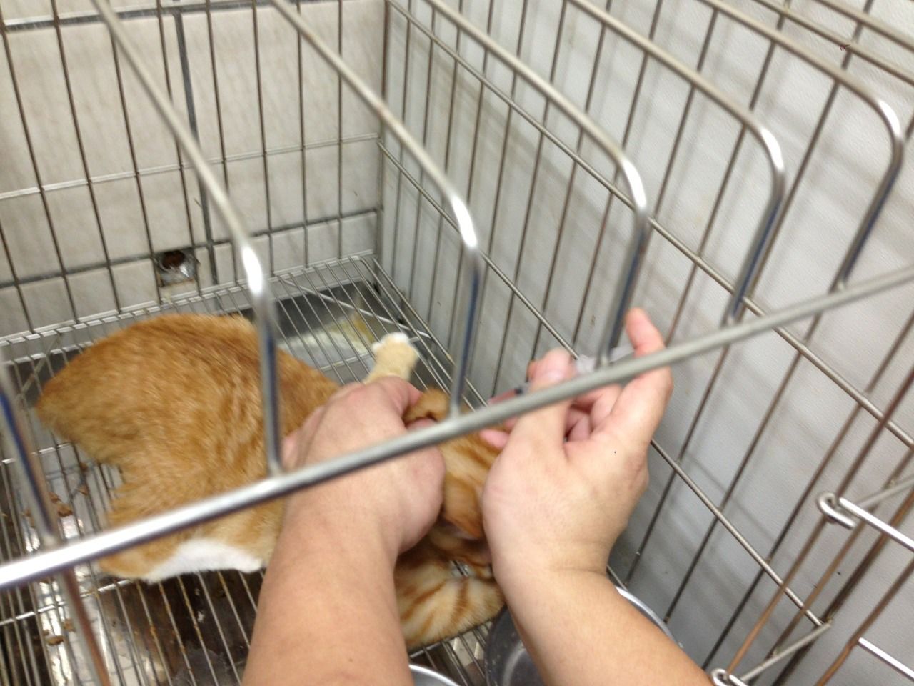 經過將近兩個星期的治療,小橘貓咪從一開始失溫癱軟無力,連吃東西都沒有力氣,到最後可以先吃雞肉泥,可以走幾步路,直到最後吃喝終於正常了,雖然活動力沒有很強,但已比一開ㄕ始有活力許多,雖然對人還是有戒心,但撫摸他的時候,不會像一開始一樣的抗拒,雖然遺憾沒有救回同伴,但小橘會連同無緣的貓咪的份一起活下去的動物近況說明: 貓咪現仍不夠親人,但持續在進步,所以和醫生討論過後,先留置醫院,而且原生地現在在蓋房子,也不適合放回,持續先和貓咪互動,等我手邊貓咪的事務處理完畢,再帶回中途,然後為他找個不離不棄的家