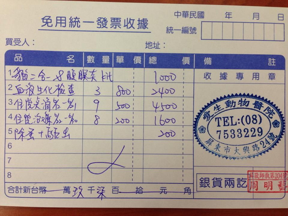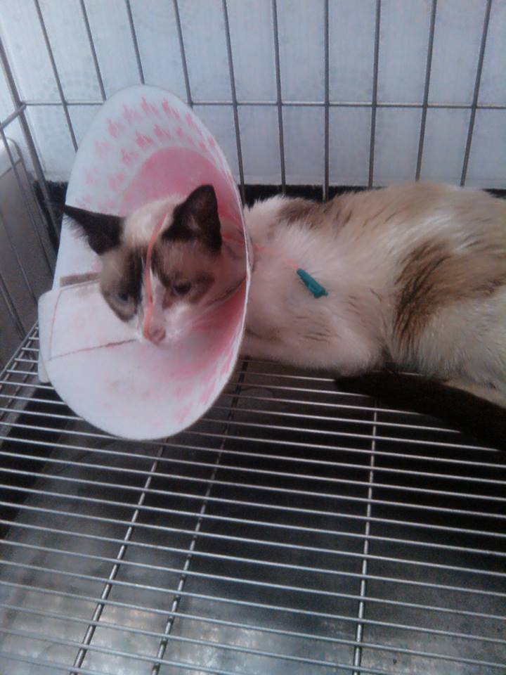 主題: 屏東市可憐腎衰竭混暹羅貓 申請者姓名: 趙慧曄 花色: 申請日期: 2014-07-02 23:38:06 申請者部落格: 申請者臉書網址: 所在縣市/合作醫院: 屏東縣/愛生動物醫院 治療費用: 9700元 需求人數: 11人 已結案 (2014-08-05 10:59:20) 報名人員: Norman Wu(已付款)、徐阿悟(已付款)、Riona Chiu(已付款)、Cary(已付款)、欣格萬寶通切貨買賣公司(已付款)、Guan-Yi Li(已付款)、certifi x5(已付款)、 候補人員: 動物病情說明: 這是繼凌雲新村戚爺爺救援TNR區域裡的貓咪!!原本志工照計畫繼續誘捕TNR貓咪!!陸續救援了幾窩無媽媽的泡疹病毒小貓現在都出院在愛心中途找幸福!!今天在TNR時發現了這隻混暹羅!!食慾不加脫水精神不濟的路倒貓!!已送愛生醫院住院醫療!!預估約三週的治療時間~貓咪6/13住院複檢時,腎指數有稍微往下降一點,精神也看起來好一些!!希望能平安出院!!有愛心的愛媽會後續照顧~~希望大家愛心幫幫他的住院醫療費用!!謝謝!! 動物近況說明: 上星期回報時狀況已不佳!!腎指數一直居高不下!!食慾無!!裝鼻胃管灌食!!點滴不斷~但還是回天乏術~~貓咪於103/06/30過世!!已火化!!