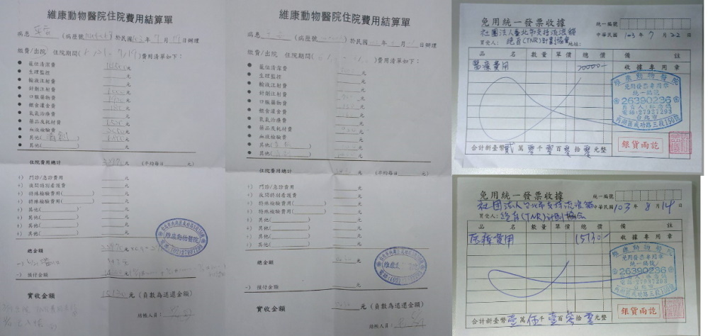 因為醫院三天結一次費用,第一次住院和前三日之醫療費用5430元自費,後協會匯款醫院支付醫療費用兩萬元,至貓出院尾款15130元尚未支付,總計醫療費用共:40560,自費5430,35130元還請各為幫忙。