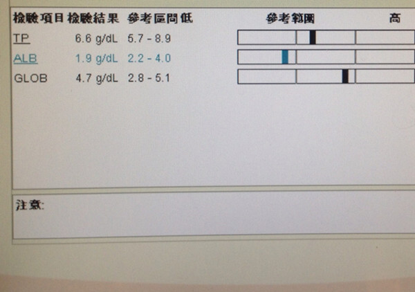 6/2 第二次血檢Tp6.6 ALB1.9(low) glob 4.7 嚴重感染加上肝合成白蛋白不良,加打一瓶白蛋白,身上的溼黏是因為傷口流出的血和組織液所致,而傷口應該是打架造成的,新傷舊傷非常多,貓咪可能因為受傷後生病多日無法進食,才會虛弱的倒在路邊。