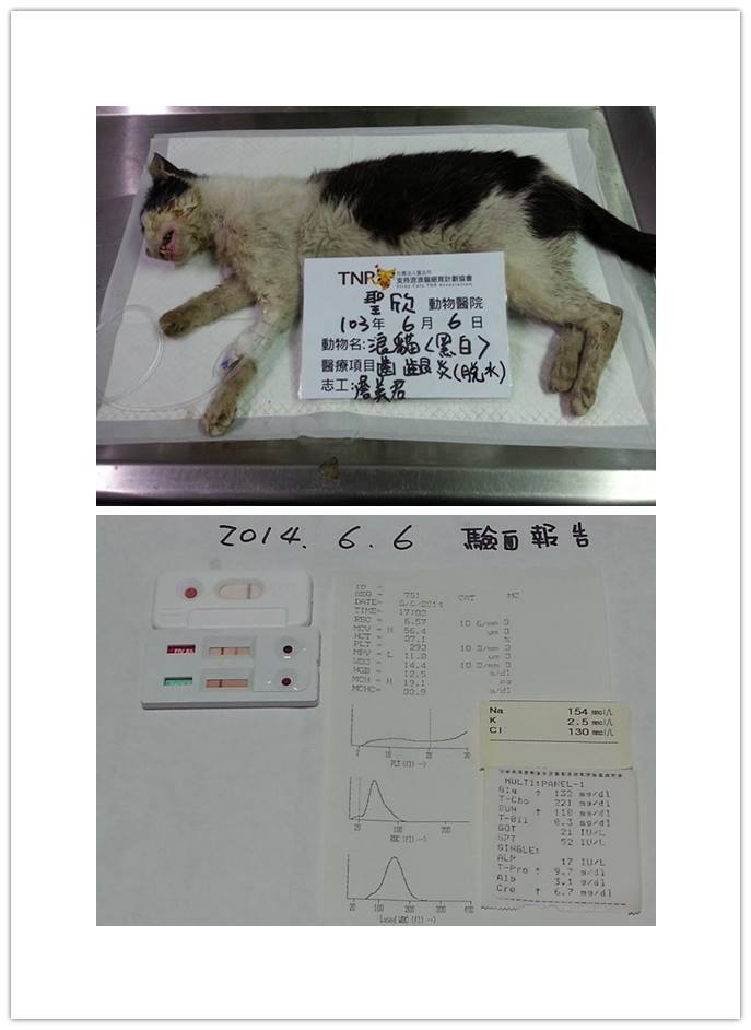 主題: 因齒齦炎而發現有腎衰竭的大黑白 申請者姓名: 詹小君 花色: 申請日期: 2014-06-25 00:49:36 申請者部落格: 申請者臉書網址: 所在縣市/合作醫院: 台中市/聖欣動物醫院 治療費用: 12000元 需求人數: 14人 已結案 (2014-08-05 10:59:10) 報名人員: 梁咪子 x5(已付款)、Elsie Huang(已付款)、曹立松(已付款)、陳琳達(已付款)、小四(已付款)、ERic YU(已付款)、林小豬 x2(已付款)、多多(已付款)、Debbie Lin(已付款)、 候補人員: 動物病情說明: 大黑白 他是在我餵養區域的孩子