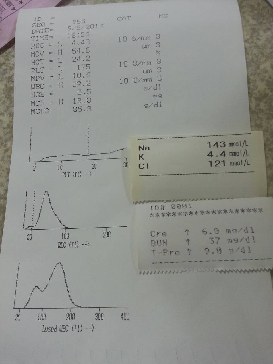 6/9第二次的驗血結果 腎指數也沒有下降很多~所以在繼續觀察