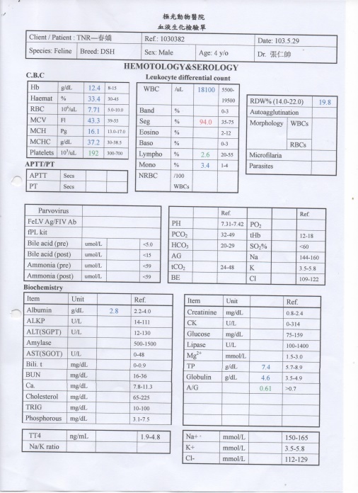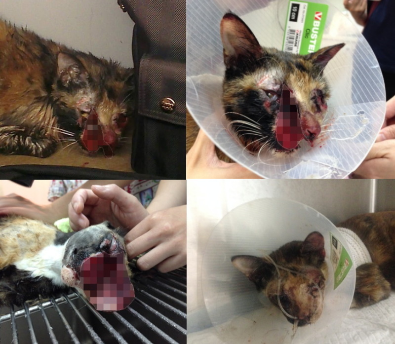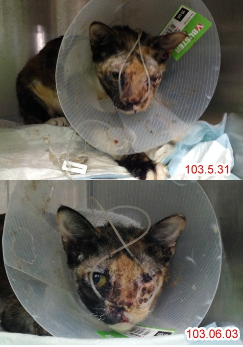 主題: 上唇整個掀開連同鼻腔整個與臉剝離的春嬌第二次費用 申請者姓名: 臺北市支持流浪貓絕育計劃協會 花色: 申請日期: 2014-06-26 21:53:08 申請者部落格: 申請者臉書網址: 所在縣市/合作醫院: 台北市/極光動物醫院 治療費用: 25000元 需求人數: 27人 已結案 (2014-08-05 10:58:23) 報名人員: 楊雨宸、蔡摳摳(已付款)、許橘子(已付款)、包子 x3(已付款)、包子 x3(已付款)、Vincent Lee x3(已付款)、包子(已付款)、Chen Ping(已付款)、Ted x2(已付款)、阿奇拉(已付款)、lllee0812(已付款)、阿屁 x2(已付款)、Riona Chiu(已付款)、李怡真(已付款)、Janice(已付款)、Lee Gingin(已付款)、Norman Wu(已付款)、Andree Huang(已付款)、小娃(已付款)、Sonia Tseng(已付款)、 候補人員: 動物病情說明: 可憐的春嬌負傷躲進店家,血淋淋的的,店員本來是想要驅趕,一聽到她哭哭,心軟不驅趕還把後面擋起來先不讓客人過去,不久基隆收容所的人前來,要把貓帶走說收容所會給貓咪"醫療",志工接獲消息急忙告知,會自行就醫,就請收容所人員離開,趕到現場一看,差點沒有掉淚,貓咪從上唇整個掀開連同鼻腔整個與臉剝離,緊急送醫麻醉進行面部整形手術、鼻腔重建、左側口腔修復、多處撕裂傷修補,術後給予嗎啡止痛,24小時夜間看護,眼睛因為無法閉合需定時點人工淚液,灌食流質食物,