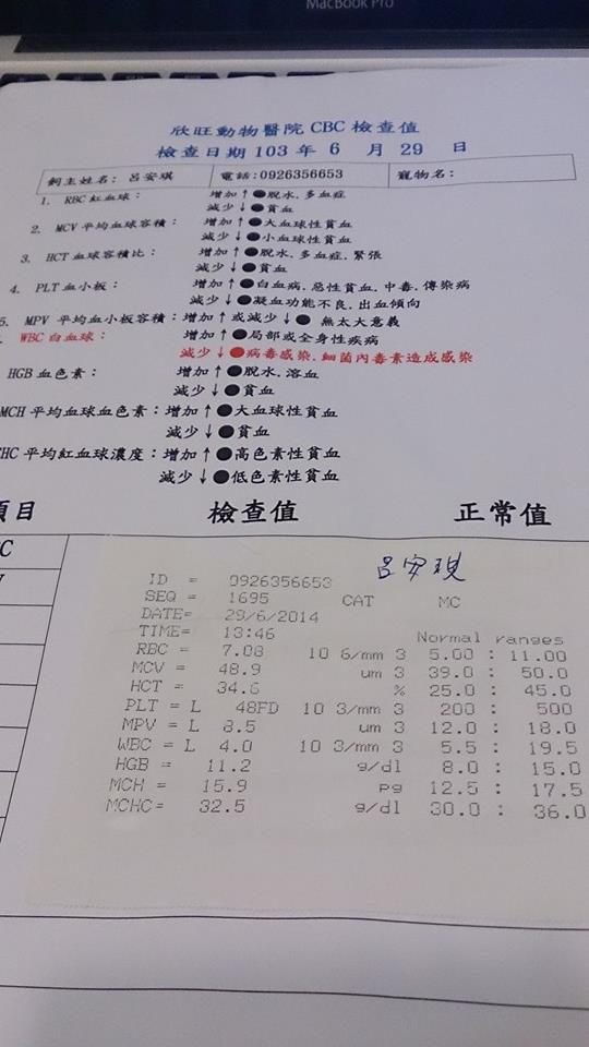 6/29張醫師幫貓咪驗血發現白血球減少,由於貓咪已經多日食慾不佳,決定要麻醉清創並同時結紮,繼續使用抗生素治療。