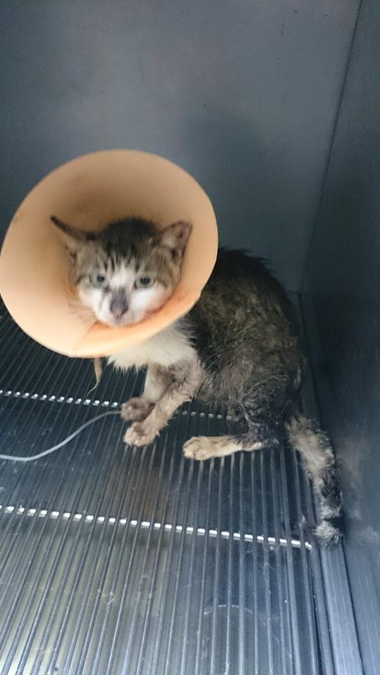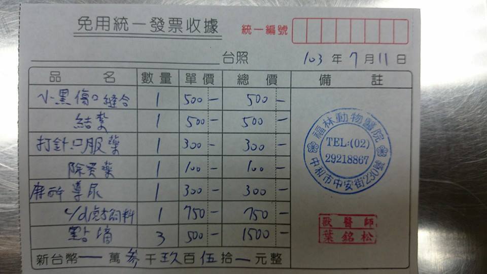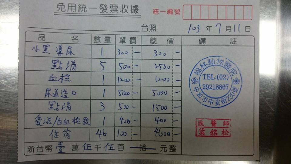 醫生發現老黑完全沒有精神且沒辦法自行排尿,當下就決定做導尿手術,做完第一次拔除尿管還是沒辦法自行排尿,於是又在做了第二次的導尿手術,但....還是沒有成功還是無法自行排尿,當下就兩個決定,