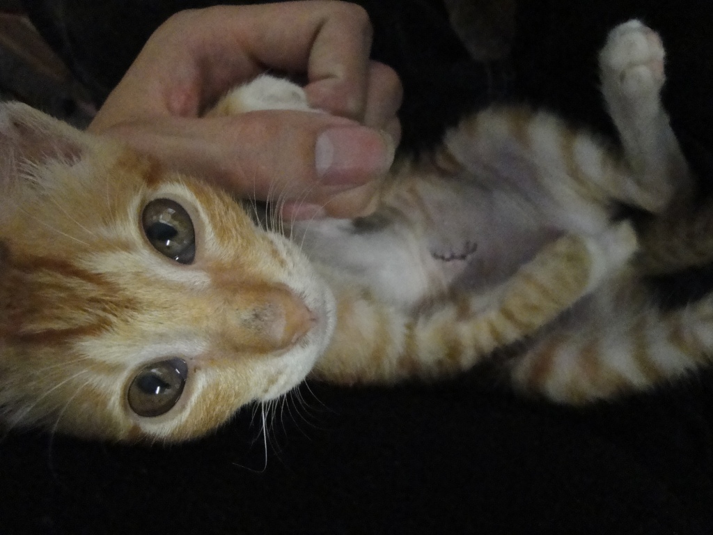 主題: 颱風天僅存的橘子貓 申請者姓名: 李承展 花色: 申請日期: 2012-06-26 22:27:11 申請者部落格: 申請者臉書網址: https://www.facebook.com/profile.php?id=100000695703990 所在縣市/合作醫院: 台北市/其他院所醫助專案(醫院請先MAIL溝通) 治療費用: 7800元 需求人數: 9人 已結案 (2012-12-01 20:33:00) 報名人員: 王駝、Vincent(已付款)、陳黑貓(已付款)、豬小妹(已付款)、Ariel Chang(已付款)、Shirley(已付款)、Vanna Tai(已付款)、SummerSha(已付款)、Amigo Yang(已付款)、林妮娜(已付款)、 候補人員: 黃偉倫、小舟、 動物病情說明: 在外頭與媽媽走丟 颱風天下大雨躲在車棚角落