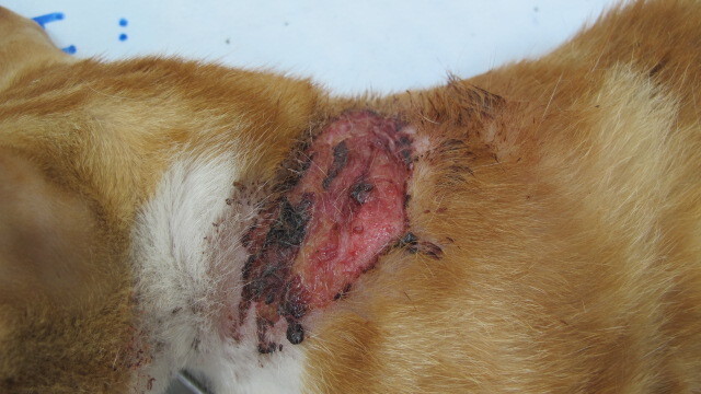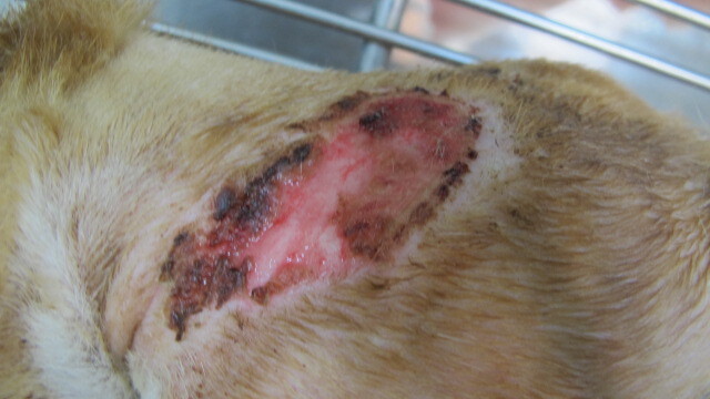 傷口面積大約有半個手掌大 而且是呈現鮮紅色的