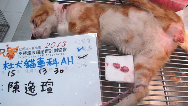 主題: 脖子有大片開放性傷口的大橘 申請者姓名: 陳逸瑄 花色: 申請日期: 2014-08-13 03:28:31 申請者部落格: 申請者臉書網址: https://www.facebook.com/yi.shiye 所在縣市/合作醫院: 高雄市/恩澤動物醫院 治療費用: 13070元 需求人數: 15人 已結案 (2014-08-26 15:02:52) 報名人員: Cynsia Pan(已付款)、ivy0934(已付款)、李佳蓉(已付款)、周妍鈞(已付款)、蜜菊(已付款)、Susan x3(已付款)、pattyhsu(已付款)、KATE(已付款)、哈那將(已付款)、KATE(已付款)、陳思瑾 x3(已付款)、 候補人員: 動物病情說明: 協會您好,