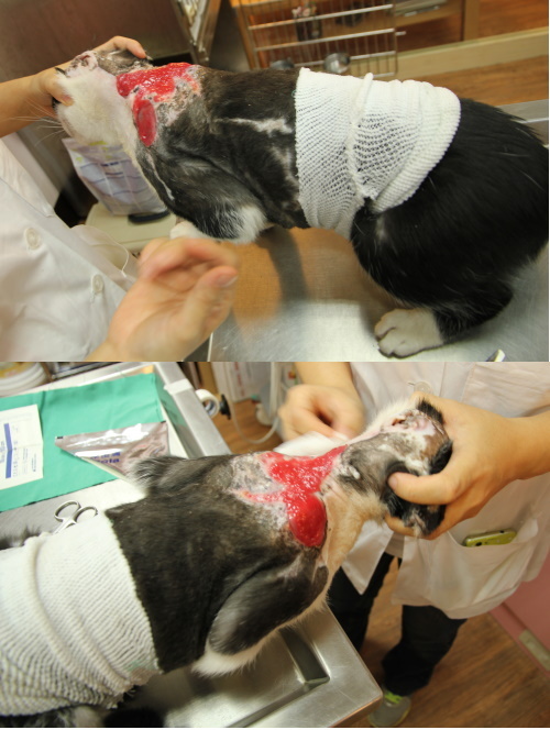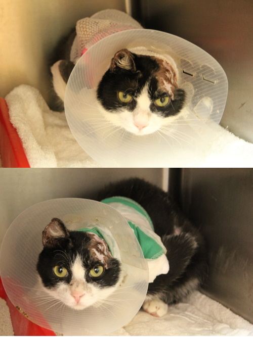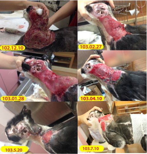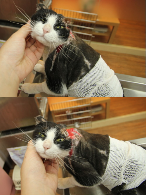 主題: 大面積燙傷的小朋友第六階段費用(內有血腥照..慎入) 申請者姓名: 臺北市支持流浪貓絕育計劃協會 花色: 申請日期: 2014-07-16 17:52:45 申請者部落格: 申請者臉書網址: 所在縣市/合作醫院: 台北市/沐恩動物醫院 治療費用: 26360元 需求人數: 29人 已結案 (2014-08-05 11:01:10) 報名人員: Julia Chu(已付款)、櫻花妹(已付款)、Vivian Ju(已付款)、Kristy Lee(已付款)、張小琪(已付款)、老頭(已付款)、Jimmy Li x2(已付款)、林韋韋(已付款)、Jerry Lai(已付款)、April Tsung(已付款)、joya lee(已付款)、irisliu6 x10、王踢娜 x2(已付款)、Rebecca(已付款)、曾嬿蓉(已付款)、austin0529 x2(已付款)、王踢娜(已付款)、irisliu6 x10(已付款)、 候補人員: philip、陳姵君、 動物病情說明: 2/1貓貓因燒傷跑來家裡求救,立即送往醫院,醫生研判應該是遭人惡意潑油放火,左耳已完全燒爛,沿著頸部到上背部有四級燒傷,醫院說這需要長期的治療,至少兩周的時間幫助牠將組織長好,至少需要1個月以上才能完全復原,且復原後需要重建左耳,目前醫藥費用是個未知數。