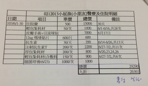 四、五月份小朋友每天1-2次使用藻酸鈣敷料幫助傷口復原,5/16手術縫合部分傷口,因張力關係,皮膚會很緊繃,無法完全縫合,但傷口已經縮小很多,醫療費用還請各位幫忙。