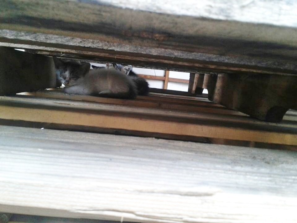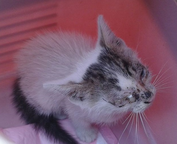看到牠眼睛感染,然後與同伴窩在一起.. 本來先丟罐頭給牠吃,但可能因為身體不舒服..所以不想吃