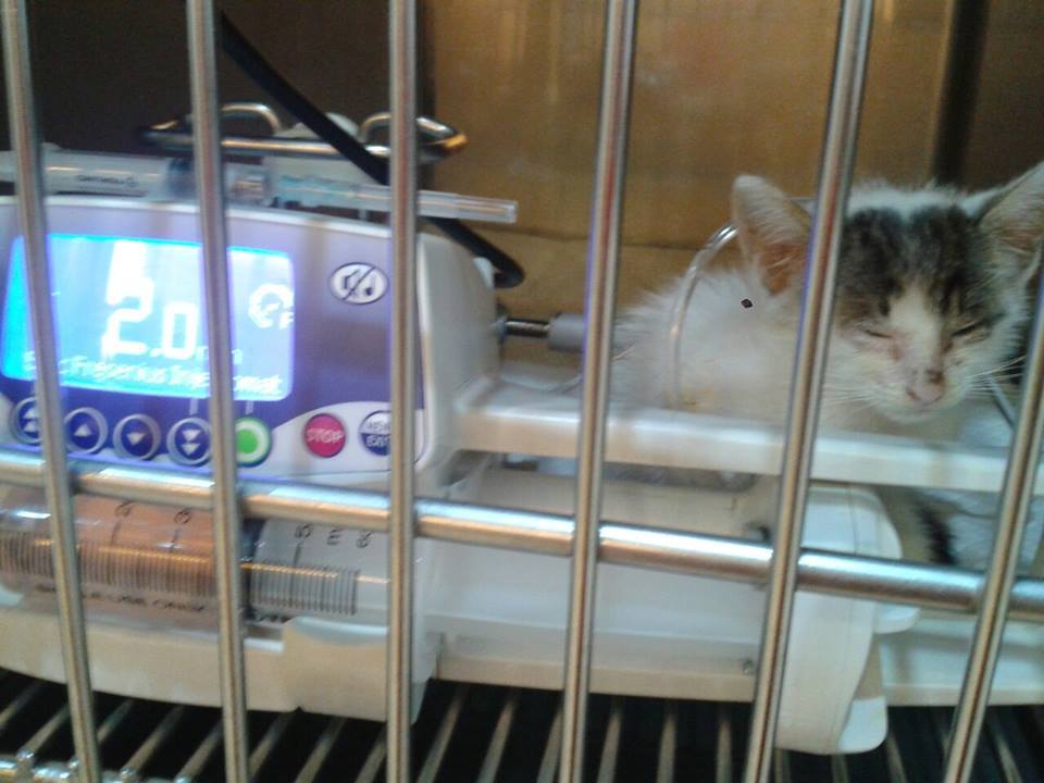 所以院方上了點滴治療貓瘟與補充營養.. 直到點滴連打6天後,漸漸有好轉